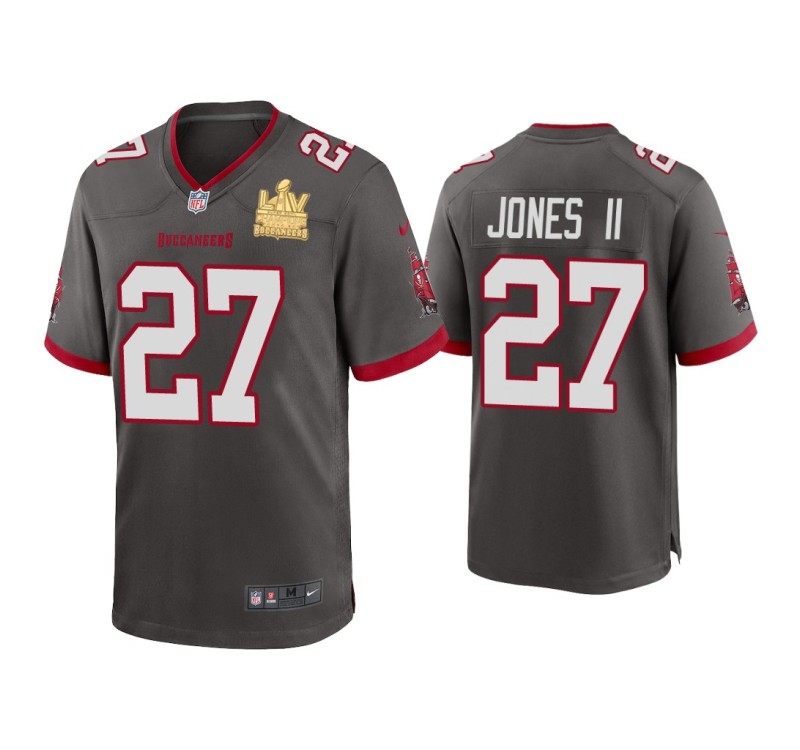 Men Tampa Bay Buccaneers #27 Ronald Jones II Super Bowl LV Champions Pewter Game Jersey