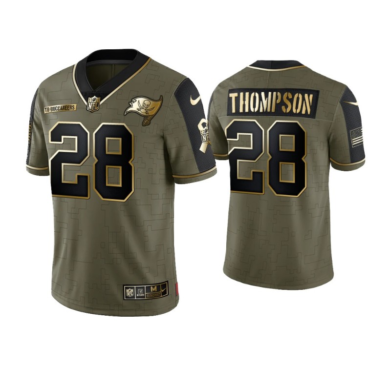 Men Tampa Bay Buccaneers #28 Darwin Thompson Olive Gold 2021 Salute To Service Limited Jersey