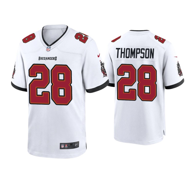 Let everyone know where your loyalty lies with the Men Tampa Bay Buccaneers #28 Darwin Thompson White Game Jersey. The graphics on this jersey will set you apart as a hardcore Tampa Bay Buccaneers fan. No one will be able to deny you're the #1 Tampa Bay Buccaneers Darwin Thompson fan when you cheer for your team in this top.