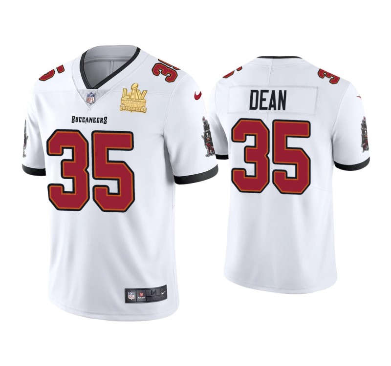 Keep your spirits high as you cheer on your team with this Men Tampa Bay Buccaneers #35 Jamel Dean Super Bowl LV Champions White Vapor Limited Jersey. The authentic look of this Nike jersey will be able to show off your fandom.