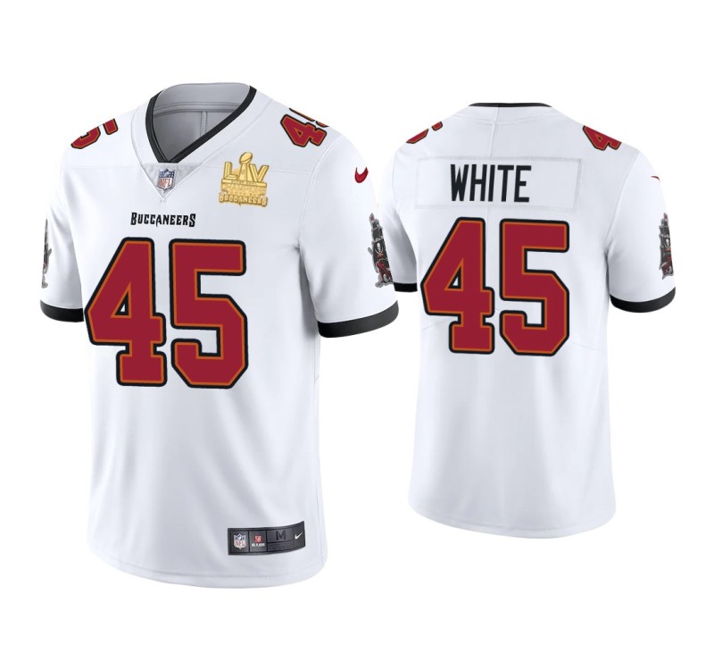 Keep your spirits high as you cheer on your team with this Men Tampa Bay Buccaneers #45 Devin White Super Bowl LV Champions White Vapor Limited Jersey. The authentic look of this Nike jersey will be able to show off your fandom.