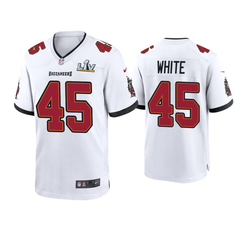 Men Tampa Bay Buccaneers #45 Devin White Super Bowl LV White Game Jersey