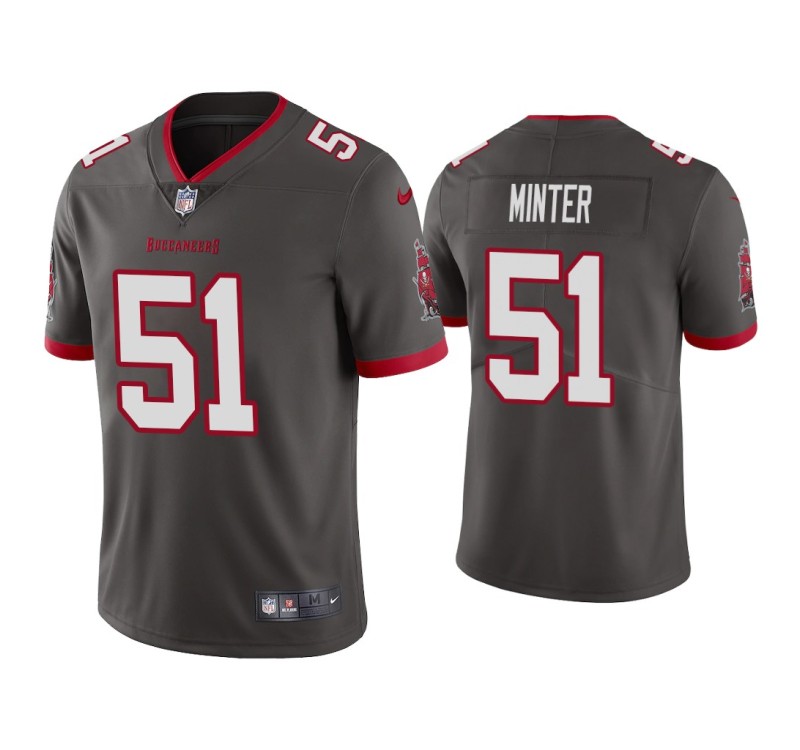 Rock the look of your favorite squad when you wear the Men Tampa Bay Buccaneers #51 Kevin Minter Vapor Limited Pewter Jersey. It features a comfortable polyester design with quality Tampa Bay Buccaneers and Kevin Minter embroidered graphics that will quickly make this Kevin Minter Jersey one of your favorites.