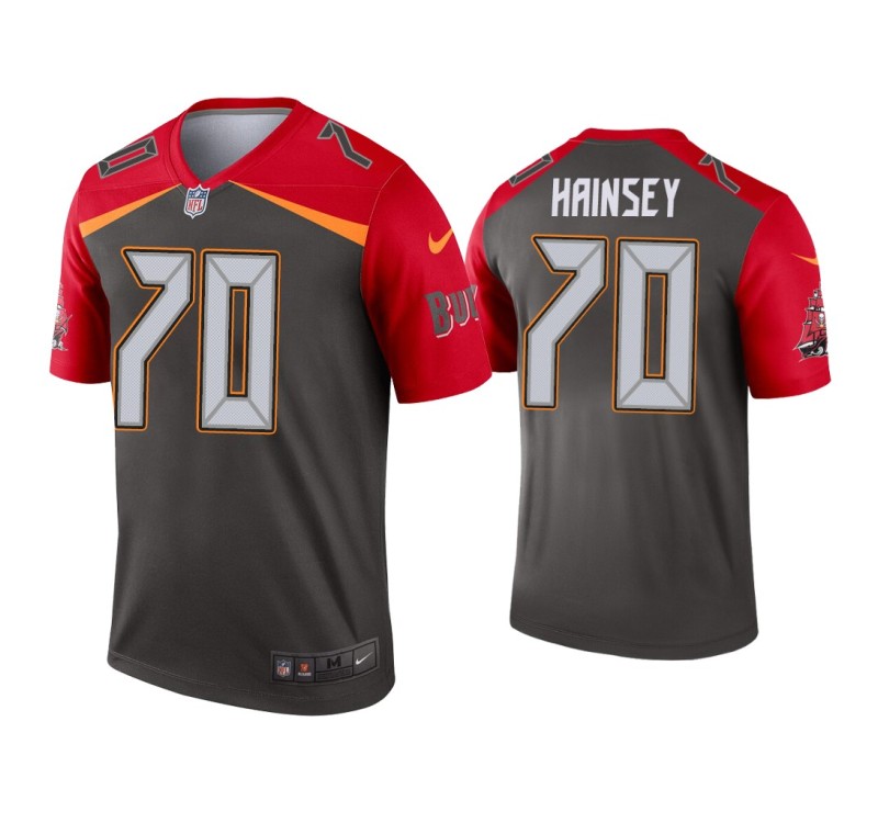 Show support for your favorite team all season long in this Men Tampa Bay Buccaneers #70 Robert Hainsey Pewter Inverted Legend Jersey. The colors and graphics on this top will set you apart as a hardcore Tampa Bay Buccaneers fan. No one will be able to deny you're the #1 fan when you cheer for your team in this Nike Inverted Legend Jersey.