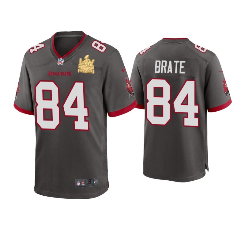 Let everyone know where your loyalty lies with the Men Tampa Bay Buccaneers #84 Cameron Brate Super Bowl LV Champions Pewter Game Jersey. The graphics on this jersey will set you apart as a hardcore Tampa Bay Buccaneers fan. No one will be able to deny you're the #1 Tampa Bay Buccaneers fan when you cheer for your team in this jersey.