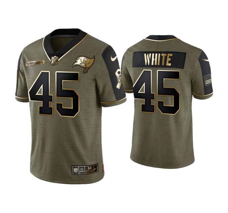 Men Tampa Bay Buccaneers #45 Devin White Olive Gold 2021 Salute To Service Limited Jersey