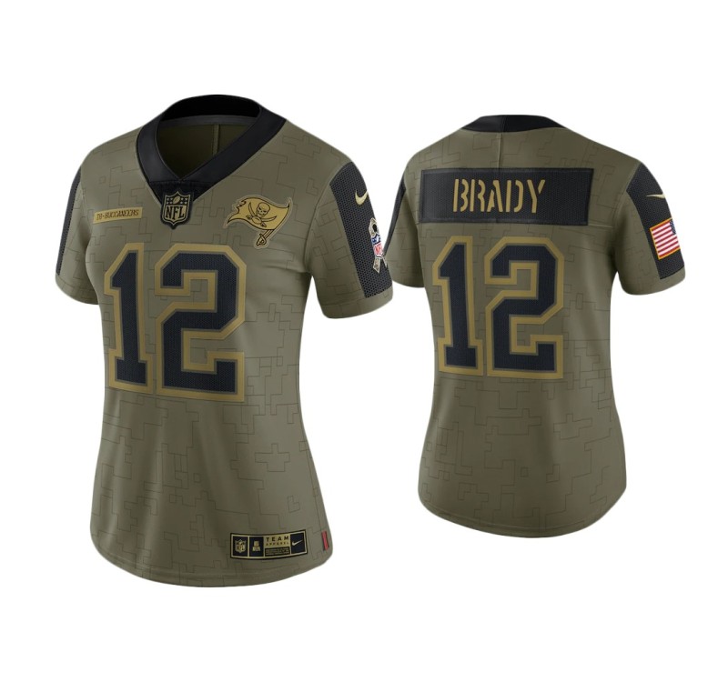 Cheer for the Tampa Bay Buccaneers with this Women Tampa Bay Buccaneers #12 Tom Brady Olive 2021 Salute To Service Limited Jersey from Nike! It features amazing team and player graphics that are sure to help you show your team pride on game day. Your purchase of Salute to Service products will help the NFL's non-profit partners - the Pat Tillman Foundation, USO and Wounded Warrior Project - as they continue their important work to support our current and former military and their families.