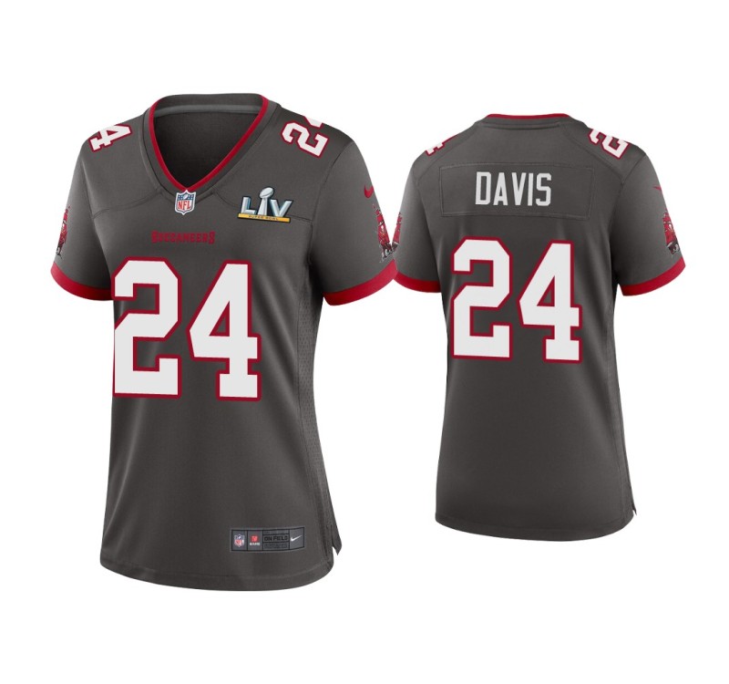 Women Tampa Bay Buccaneers #24 Carlton Davis Super Bowl LV Pewter Game Jersey