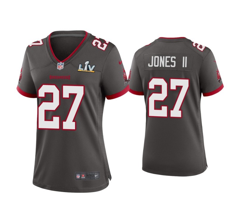 Women Tampa Bay Buccaneers #27 Ronald Jones II Super Bowl LV Pewter Game Jersey