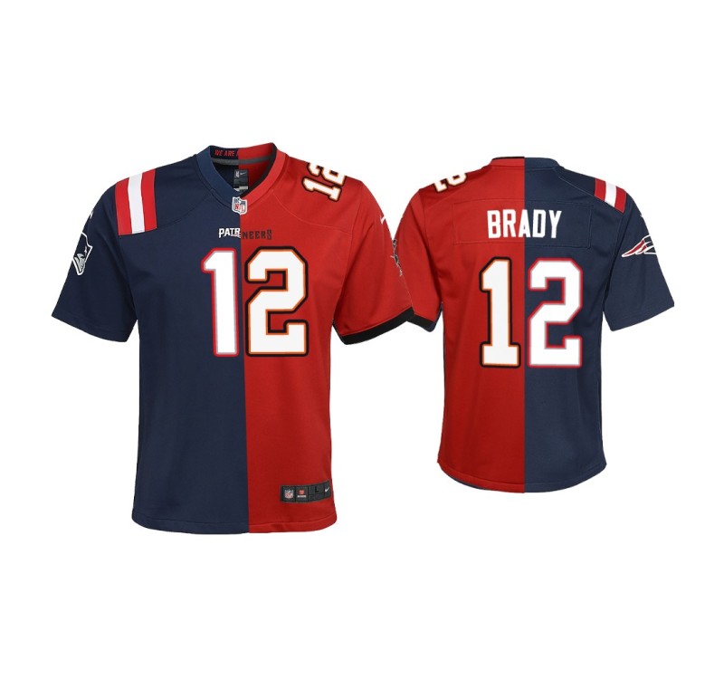 Youth Tampa Bay Buccaneers #12 Tom Brady Navy Red Split Game Jersey